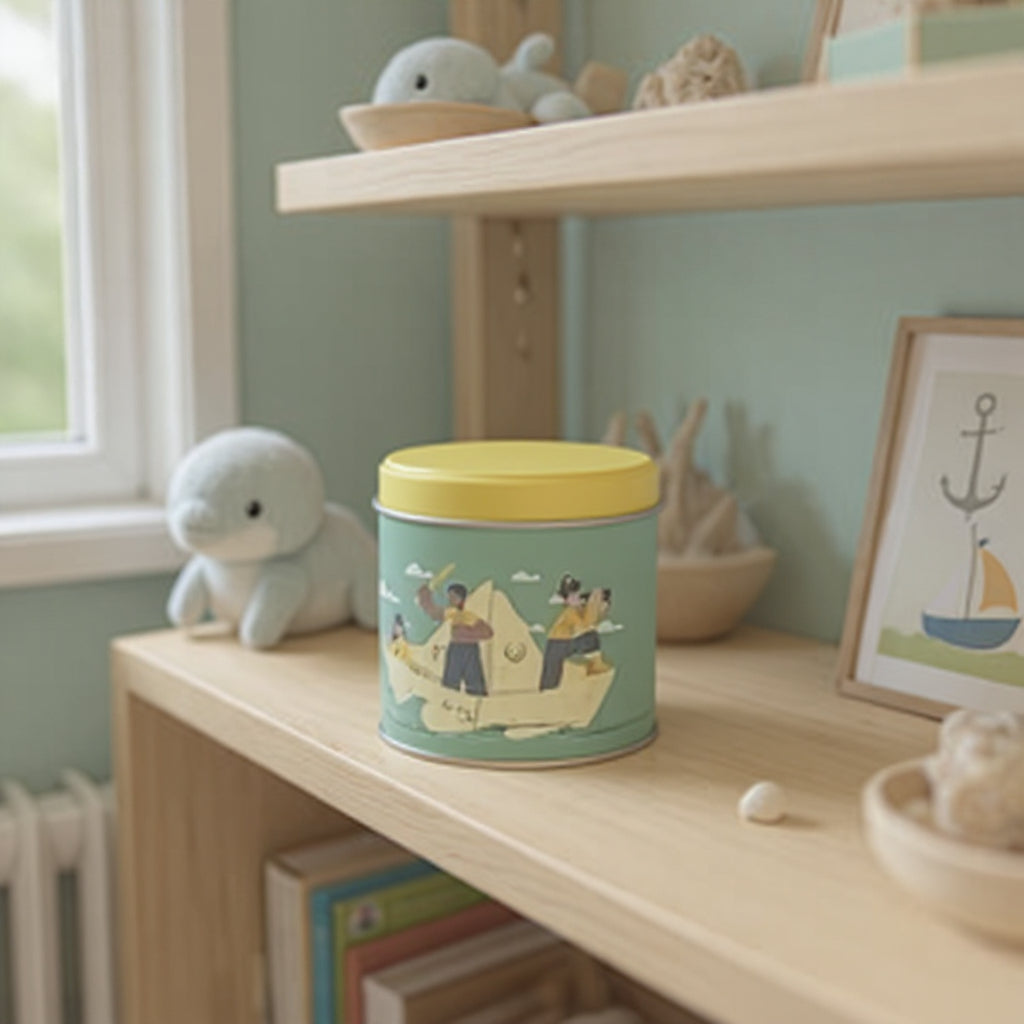 Além de ser uma linda decoração, essa lata temática é perfeita para presentear e guardar os pertences das crianças de forma criativa. Deixe a diversão navegar com essa lata incrível!