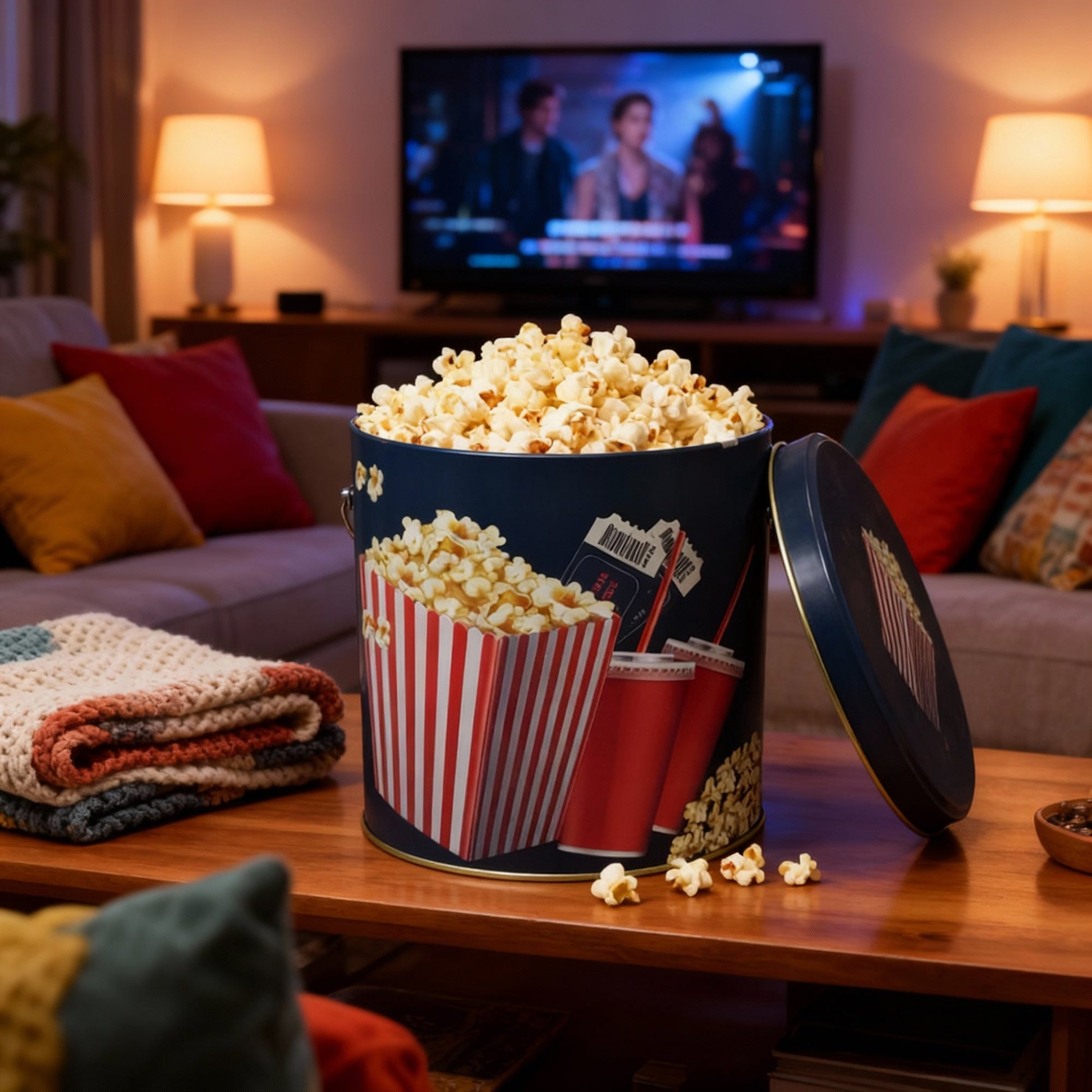 Para os amantes de filmes, a Lata Pop&Soda é o acessório ideal para uma sessão em casa com amigos ou família. É perfeita para armazenar suas pipocas enquanto você assiste seus filmes favoritos.